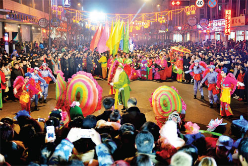 沒(méi)有了往年的大型彩門,沒(méi)有了往年的大型彩車,也沒(méi)有了往年的大型文藝隊(duì)伍,但彩燈仍然亮起來(lái)了,旺火仍然燃起來(lái)了,鼓樂(lè)也響起來(lái)了,人群也聚起來(lái)了,禮花也打起來(lái)了……2016年繁峙縣的元宵節(jié)是在一片節(jié)儉氛圍中進(jìn)行的,雖然聲勢(shì)規(guī)模小了,但元宵節(jié)的氛圍依然濃厚,人們歡樂(lè)的笑聲仍然在街道上蕩漾,繁峙人民過(guò)了一個(gè)節(jié)儉簡(jiǎn)約、文明健康的元宵佳節(jié)。(李曉軍 攝)