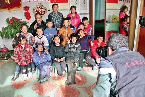 近日,原平市文明辦、市文聯(lián)組織攝影愛好者下基層開展“迎春送祝?!被顒?dòng),對(duì)全市模范、身邊好人進(jìn)行了走訪慰問,并為他們拍攝了全家福照片。圖為攝影愛好者為2014年中國好人、山西省第四屆道德模范陳天文、郭改然夫婦免費(fèi)拍攝全家福照片。(褚震 攝)