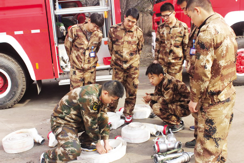 3月17日,河曲消防大隊派員深入樓子營鎮(zhèn)神華、神東發(fā)電廠,指導企業(yè)消防隊員進行消防訓練。圖為河曲消防大隊消防員為企業(yè)消防隊員做消防操作演示。(樊彥勛 攝)