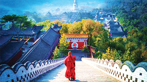 登中臺(tái)翠巖峰。中臺(tái),又被稱(chēng)為華麗之臺(tái),演教寺供奉儒童文殊。