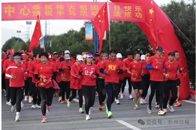 奮進新征程,奔跑慶華誕。10月1日,定襄縣125名馬拉松愛好者以跑“半馬”的方式慶祝中華人民共和國成立75周年。