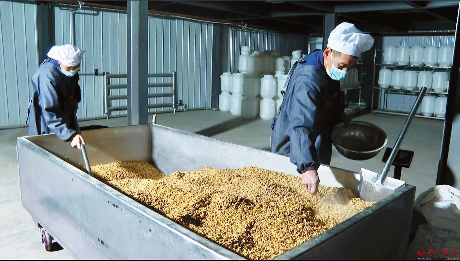 走進(jìn)莜麥酒生產(chǎn)車間,看到工人們正在各自的崗位上忙碌著。莜麥經(jīng)過淘洗、制曲、發(fā)酵、蒸餾等28道工序,清香撲鼻的莜麥酒就釀造而成。山西德裕酒業(yè)有限責(zé)任公司經(jīng)理王保東說:“莜麥釀成酒后,大大提高了其附加值?!?/p>