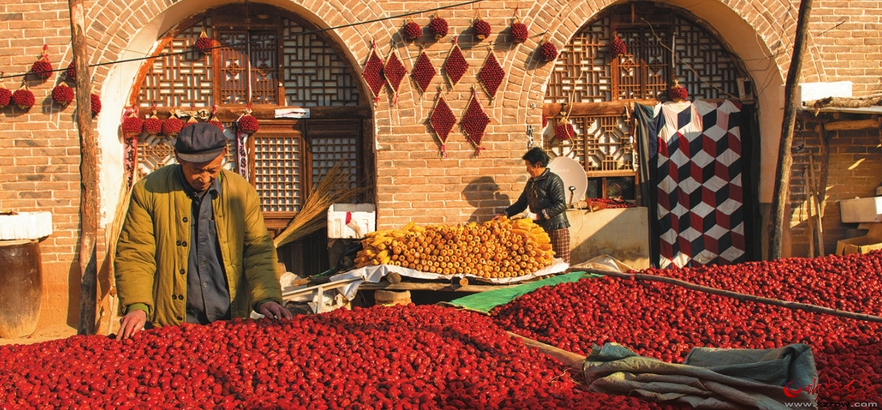 曬棗也是一件頗有詩意的事情。鋪曬的紅棗微微發(fā)皺,是糖分再一次累積的微妙過程。滿地的紅棗,看起來喜慶又壯觀,是深秋保德一道特別的風(fēng)景線。