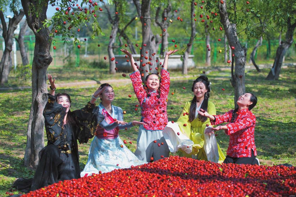 游客沉浸在收獲紅棗的喜悅中。