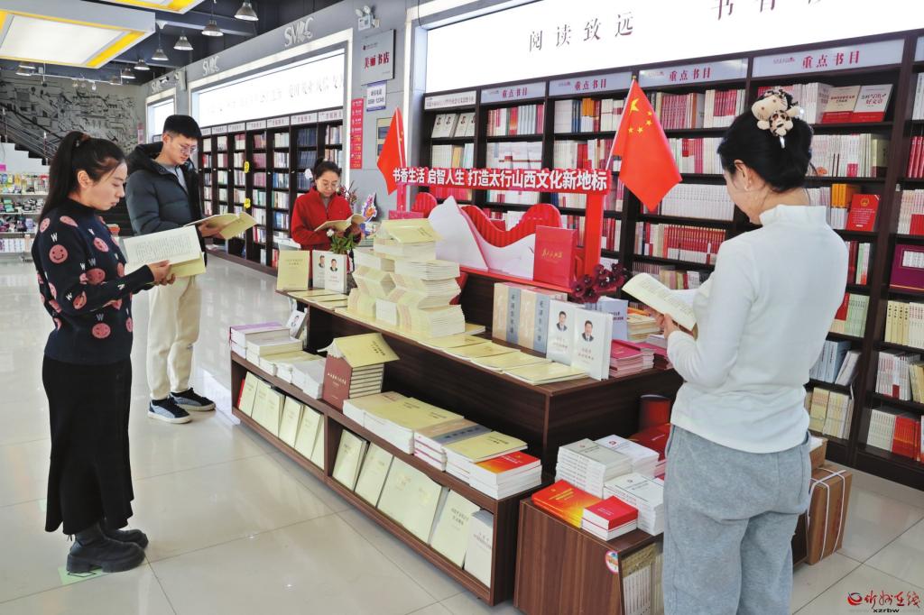 《習(xí)近平文化思想學(xué)習(xí)綱要》出版發(fā)行以來,忻州市新華書店積極組織貨源,第一時(shí)間設(shè)立專柜重點(diǎn)展示銷售,廣大讀者踴躍選購。 (記者 張存良攝)