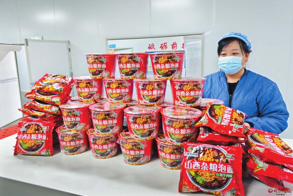 12月22日,筆者走進(jìn)位于寧武縣陽方口鎮(zhèn)農(nóng)業(yè)經(jīng)濟(jì)園區(qū)的山西鄉(xiāng)村味食品有限公司。車間里,一箱箱山西雜糧泡面碼放整齊,等待裝車,工人蘭巧云正在清點(diǎn)散裝的泡面。