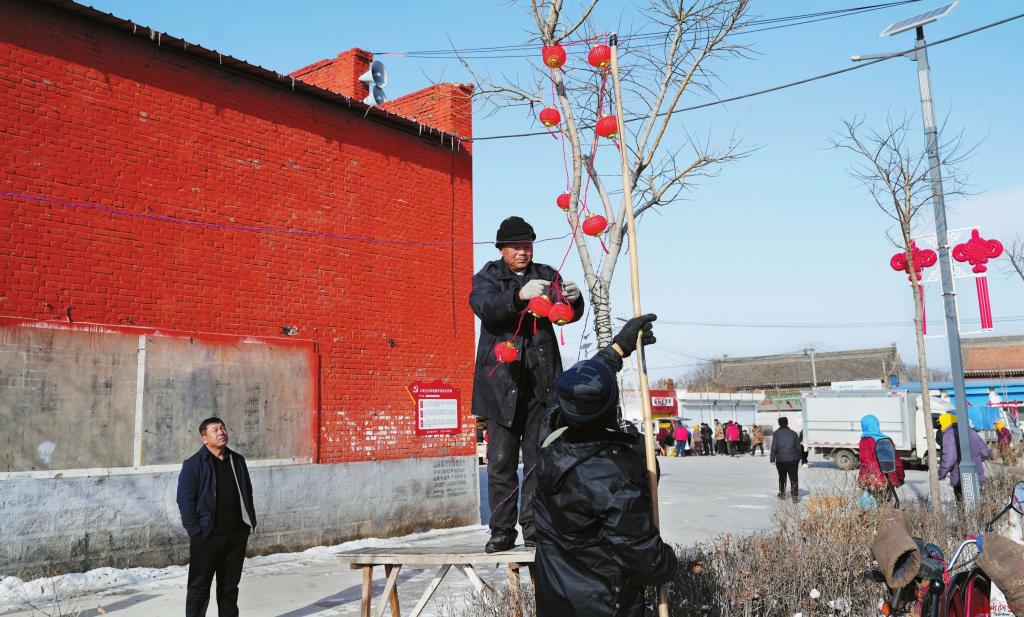 1月16日,五寨縣胡會(huì)村村民在文化廣場(chǎng)安裝彩燈,為村子增添了濃濃的節(jié)日氣氛。(