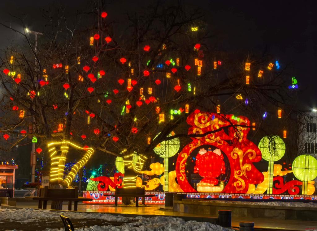 春節(jié)期間,我市城區(qū)街頭巷尾被各式花燈點(diǎn)綴。道路兩旁的樹木上掛滿了彩燈,在夜色里繽紛閃爍,給城市披上了五光十色的霓裳,市民游客們紛紛走上街頭、走進(jìn)公園景區(qū),欣賞璀璨的夜景,沉醉在美好的時(shí)光里。(攝影記者劉繼生)