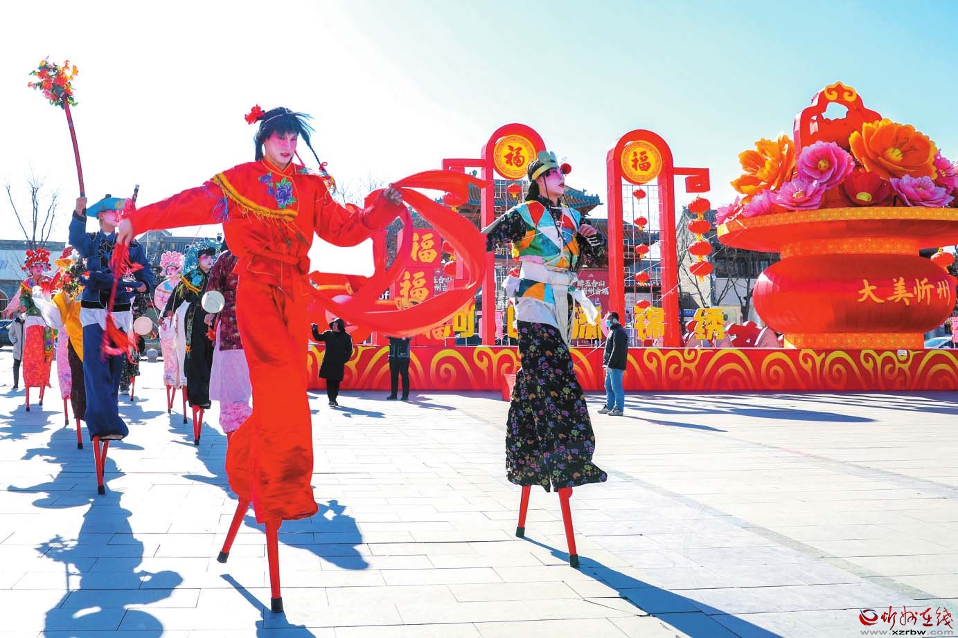 忻州古城高蹺表演。 本報(bào)記者 范 琛攝