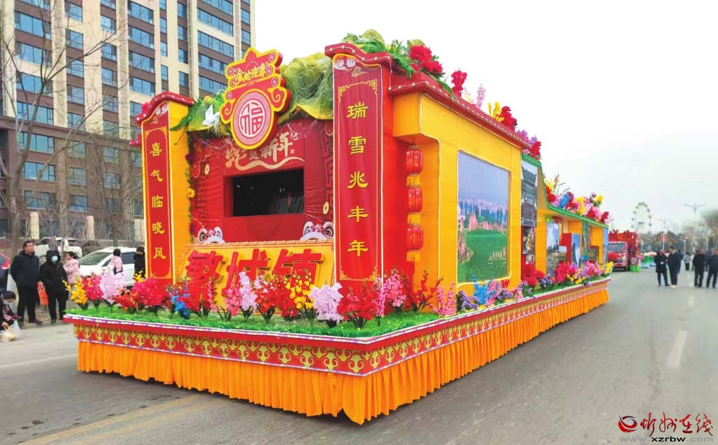 正月十四上午九時,六輛精心設(shè)計的主題彩車沿濱河路徐徐前行:東城街村彩車兩側(cè)以超大電子屏播放全鎮(zhèn)發(fā)展風(fēng)貌與規(guī)劃;南城街彩車以滿載果蔬的渡輪形象寓意豐收與希望;北城街彩車在花的海洋中展示本土名優(yōu)特產(chǎn)品與風(fēng)景名勝;西城街彩車以高山起伏的造型展示繁城鎮(zhèn)特色果品和農(nóng)牧產(chǎn)業(yè)概況;南關(guān)村彩車以“繁榮盛峙”造型展現(xiàn)紅旗模范村的責(zé)任擔(dān)當;西義村彩車通過“高臺表演”形式營造歡樂喜慶的氛圍。每輛彩車高達5米,吸引了眾多群眾駐足觀看,紛紛舉起手機記錄這“行走的民俗畫卷”。