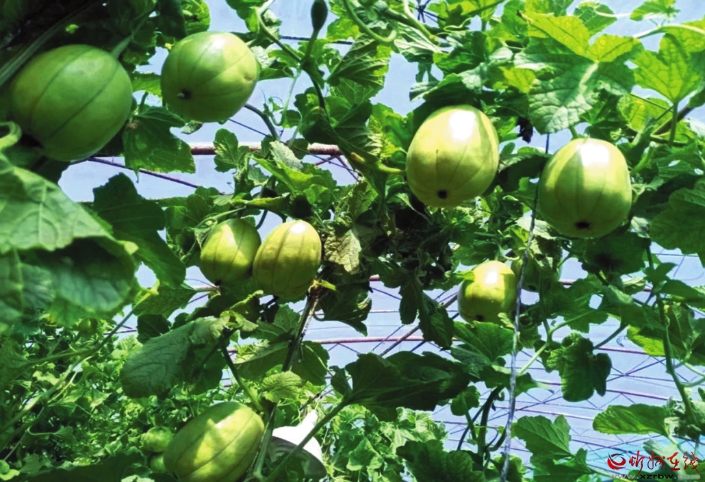 圖為忻府區(qū)金山鋪大棚香瓜長勢喜人。