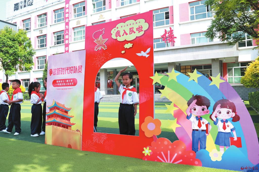 5月7日,忻州市七一路小學(xué)舉行“紅領(lǐng)巾愛祖國”一年級分批入隊(duì)儀式。此次入隊(duì)儀式不僅是孩子們邁向成長的重要起點(diǎn),也是他們?nèi)松械囊粋€(gè)重要時(shí)刻。新隊(duì)員們將牢記紅領(lǐng)巾的責(zé)任,賡續(xù)紅色精神,用實(shí)際行動爭做新時(shí)代好隊(duì)員。圖為新隊(duì)員拍照留念。 (記者 張存良攝