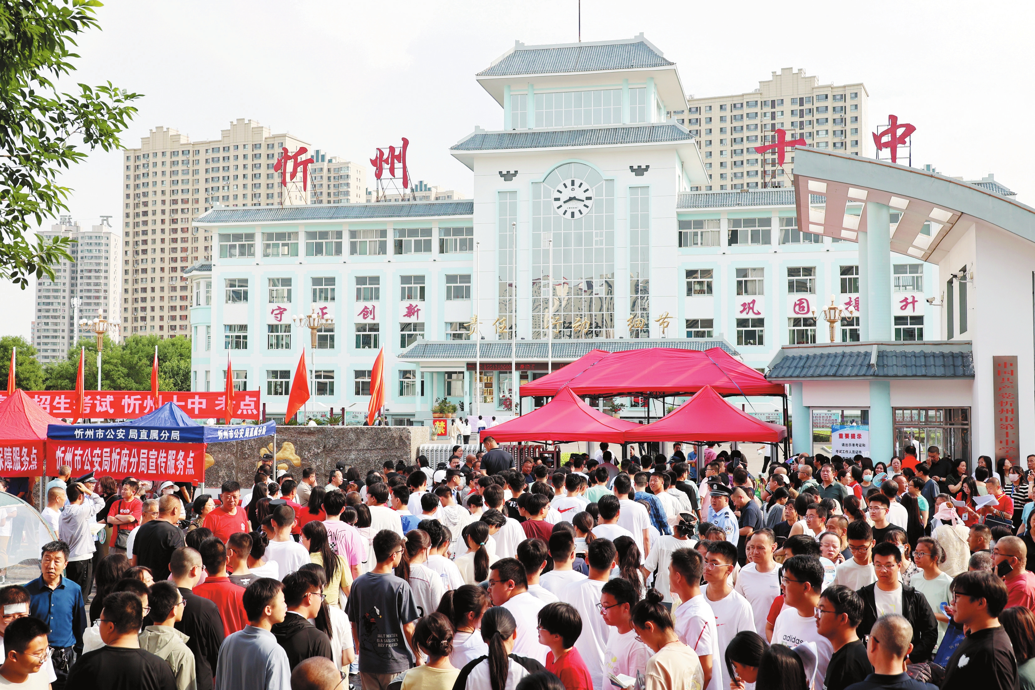 圖為忻州二中考點(diǎn),家長(zhǎng)為考生送上美好祝福。趙菁攝