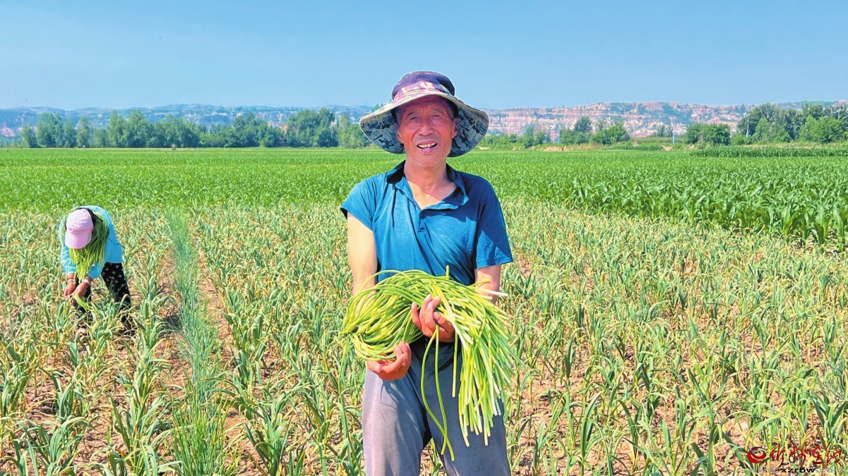 鄉(xiāng)村要振興,產(chǎn)業(yè)是關(guān)鍵支撐。眼下,正值河曲縣蒜薹成熟的時(shí)節(jié)。在西口鎮(zhèn)唐家會(huì)村的田間地頭,連片的蒜苗映入眼簾,一股濃濃的蒜香撲鼻而來(lái)。蒜農(nóng)們正俯身穿梭在蒜壟間,隨著手上一連串熟練的動(dòng)作,一根根新鮮嫩綠的蒜薹被快速抽出??粗种杏执钟珠L(zhǎng)的蒜薹,蒜農(nóng)們臉上洋溢著豐收的喜悅。蒜農(nóng)搶農(nóng)時(shí)、忙采收、話振興,小小紫皮蒜為鄉(xiāng)村發(fā)展注入了強(qiáng)勁活力。