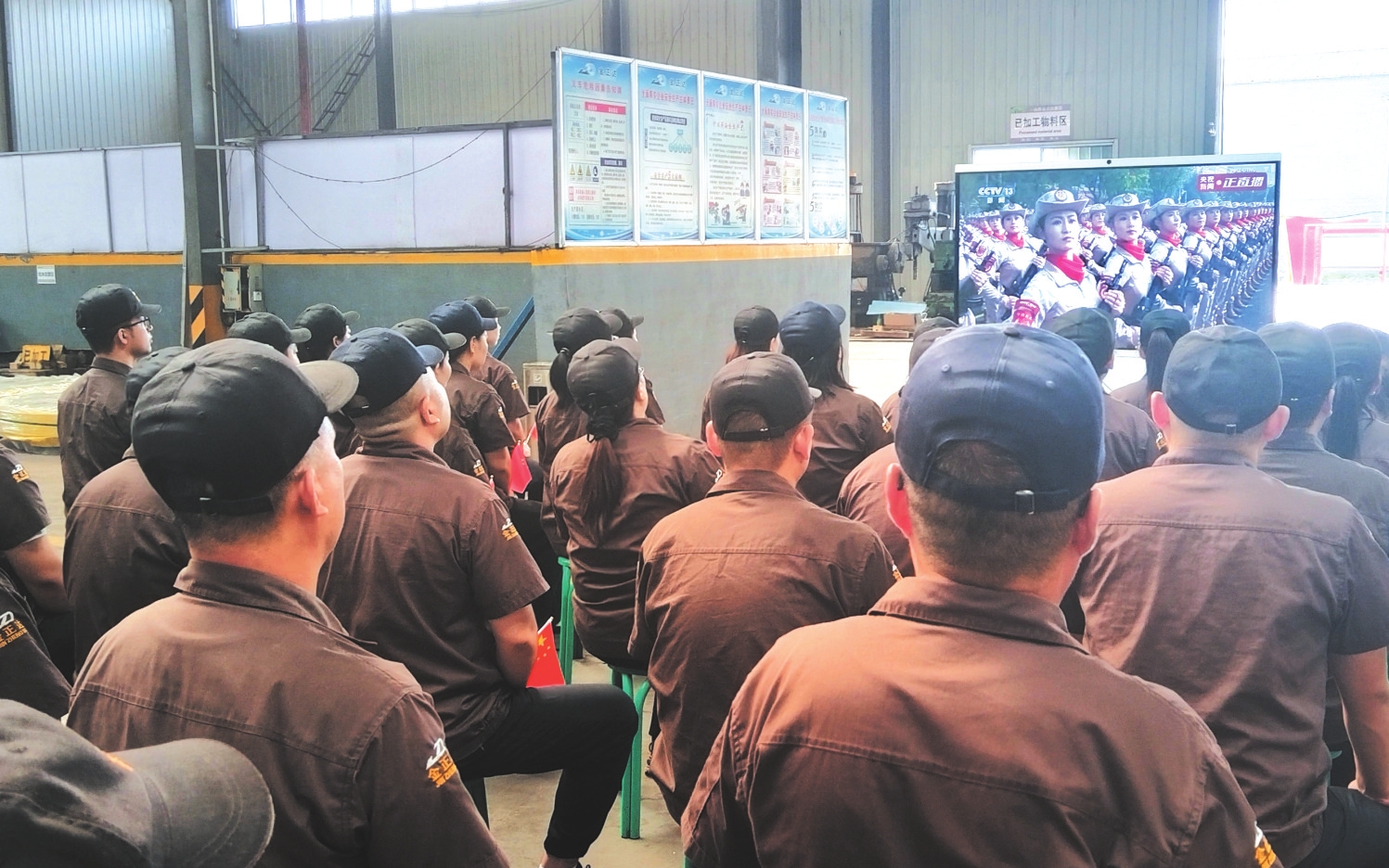 山西金正達(dá)金屬制品有限公司員工觀看紀(jì)念大會(huì)。劉婧攝