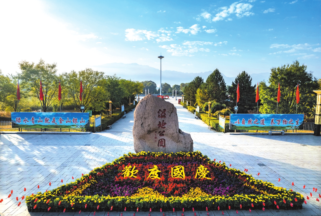 代縣滹沱河濕地公園搭起了花壇,供人們參觀拍照。王晉東攝