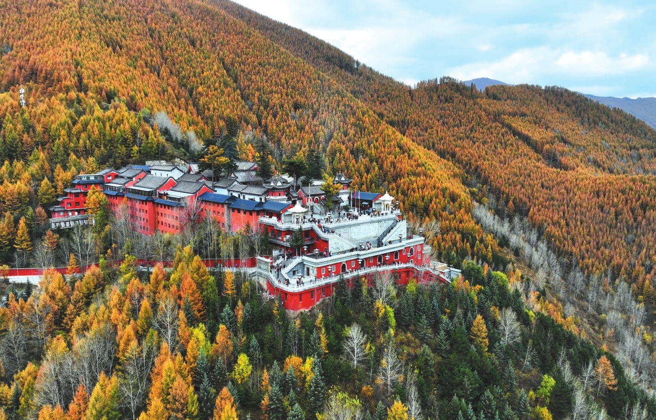 秋季已近尾聲,五臺(tái)山的秋色卻進(jìn)入最絢爛的篇章。漫山松柏與闊葉林褪去翠綠,換上金色、赤紅與橙黃的華服,與千年古剎的紅墻黛瓦相映成景,吸引海內(nèi)外游客共赴這場(chǎng)秋日禪意之約。