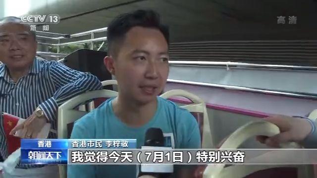 香港市民 李梓敬:香港回歸祖國(guó)23周年,我覺(jué)得今天(7月1日)特別興奮。因?yàn)榫褪窍愀刍貧w以來(lái),這是第一次有國(guó)安法的7月1日,所以我覺(jué)得出來(lái)的時(shí)候,心中特別感到安全。我們的市民出來(lái)的時(shí)候都覺(jué)得特別安全,有特別的安全感,特別是為自己是中國(guó)人的身份覺(jué)得自豪。未來(lái)香港的發(fā)展當(dāng)然一定會(huì)更好,跟我們的祖國(guó)繼續(xù)向前。