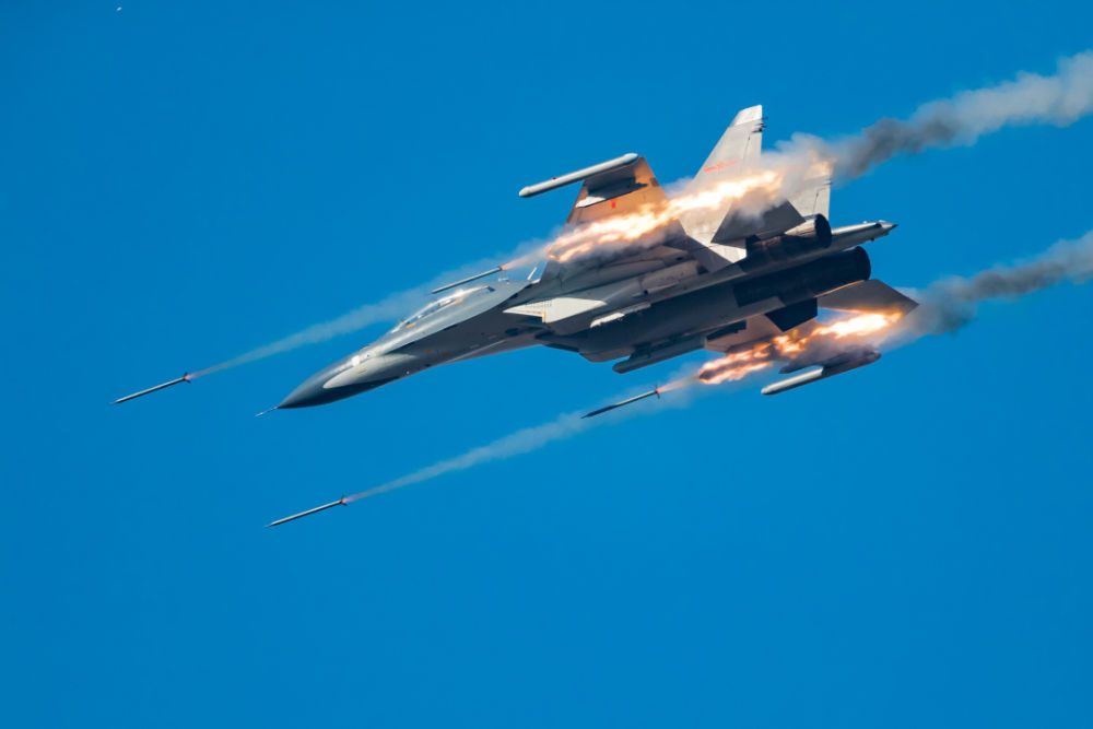 參加空軍“金飛鏢-2018”比賽的戰(zhàn)機(jī)進(jìn)行實(shí)彈攻擊(2018年4月24日攝)。新華社發(fā)(楊盼 攝)