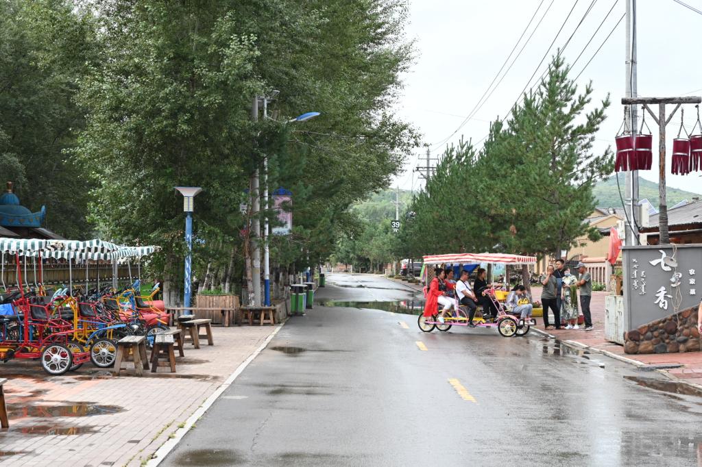 辛天喜今年56歲,在白雙龍的鼓勵下,旅游旺季在民俗風(fēng)情街專門做租賃觀光車的生意。2017年的時候,他花了2萬元從天津購買了6輛觀光自行車,一個夏天,僅出租觀光自行車這一項的收入就達到了7萬元,之后辛天喜又陸續(xù)購買了10輛觀光自行車,并開始經(jīng)營燒烤和小吃等項目,2018年就賺近10萬元左右。