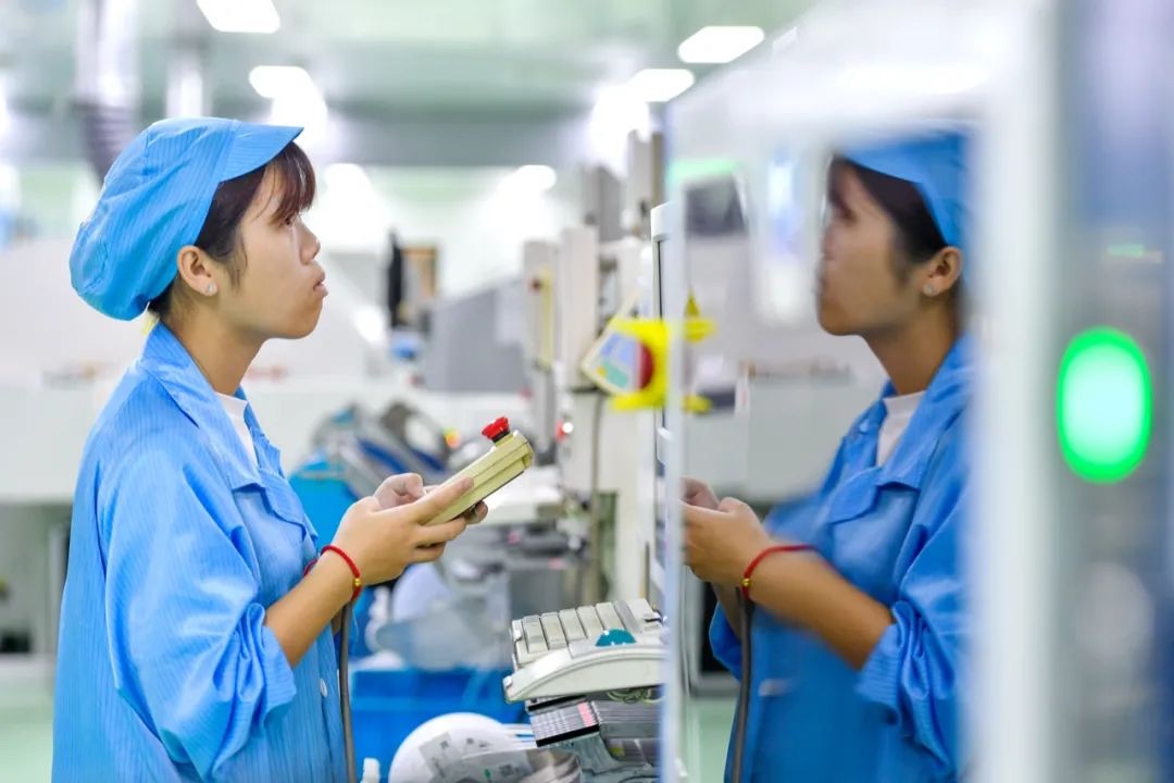 △2020年9月14日,位于浙江省湖州市長興經(jīng)濟(jì)技術(shù)開發(fā)區(qū)的一家科技公司車間,工人正在檢查貼片坐標(biāo)準(zhǔn)確性。