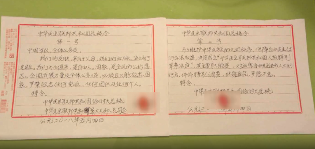 “中華民主聯(lián)邦共和國總統(tǒng)令第一號”