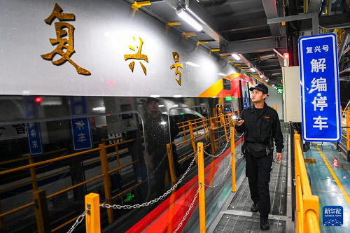 1月14日,在中國(guó)鐵路南寧局集團(tuán)有限公司南寧車輛段南寧動(dòng)車所,地勤機(jī)械師對(duì)車體表面進(jìn)行檢查。(新華社記者 曹祎銘 攝)
