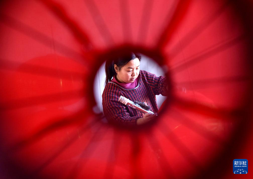 1月14日,在河北省石家莊市藁城區(qū)屯頭村一家傳統(tǒng)宮燈廠,工人在制作、晾曬宮燈。(新華社發(fā) 梁子棟 攝)