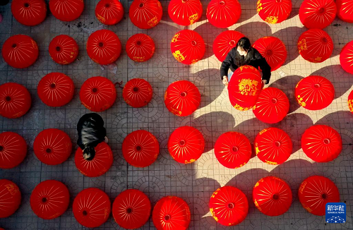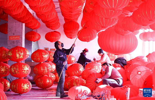 春節(jié)臨近,河北省多地?zé)艋\制作工坊趕制大紅燈籠,供應(yīng)節(jié)日市場(chǎng)。