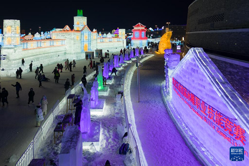 1月15日,黑龍江省首屆冰雕職業(yè)技能競(jìng)賽在哈爾濱冰雪大世界正式開賽,18支代表隊(duì)的50多位冰雕選手冰城秀技,吸引眾多游客關(guān)注。