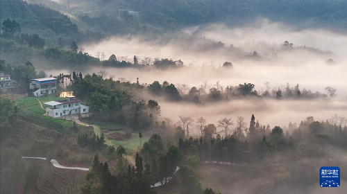 四川瀘州:晨霧彌漫鄉(xiāng)村美