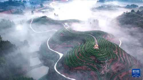 四川省瀘州市納溪區(qū)大渡口鎮(zhèn)鳳凰湖村晨霧彌漫,宛若仙境(1月19日攝,無(wú)人機(jī)照片)。(新華社發(fā) 劉學(xué)懿 攝)