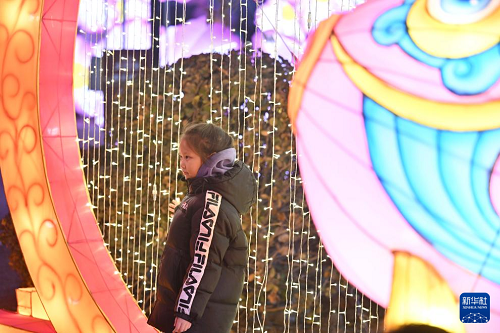 1月22日,小朋友在第二屆津彩大燈會現(xiàn)場留影。(新華社記者 李然 攝)