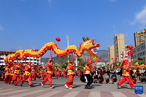 2月6日,人們在南澗縣龍燈會上表演舞蹈。(新華社記者 陳欣波 攝)
