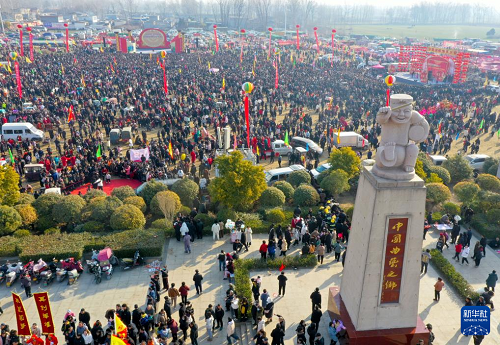 2月10日拍攝的馬街書會(huì)現(xiàn)場(chǎng)(無(wú)人機(jī)照片)。(新華社記者 郝源 攝)