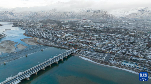 這是2月16日拍攝的降雪后的拉薩市區(qū)(無人機(jī)照片)。(新華社記者 晉美多吉 攝)