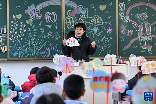 2月16日,寧夏銀川市金鳳區(qū)第一小學(xué)老師在為學(xué)生講授開學(xué)第一課。(新華社發(fā) 袁宏彥 攝)