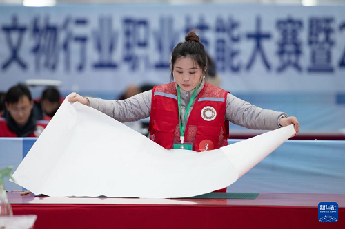 3月6日,參賽選手在參加紙張書畫文物修復(fù)師項(xiàng)目比賽。(新華社記者 張端 攝)