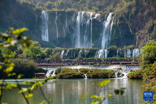 3月10日,游人在云南省曲靖市羅平九龍瀑布群風(fēng)景區(qū)游覽。(新華社發(fā) 彭奕凱 攝)