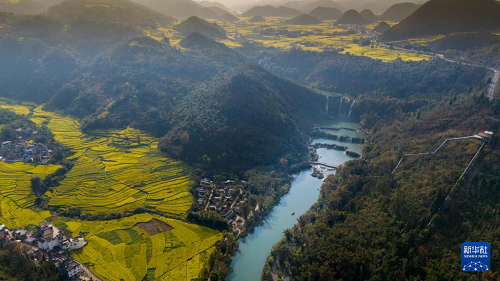 春日里,在云南省曲靖市羅平九龍瀑布群風(fēng)景區(qū),湖光山色美不勝收,吸引眾多游客。