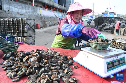 3月12日,漁民在連江縣苔菉鎮(zhèn)后灣村碼頭分揀鮑魚苗。(新華社記者 林善傳 攝)