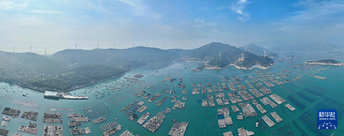 3月12日拍攝的連江縣黃岐半島附近海域的鮑魚養(yǎng)殖區(qū)(無人機全景照片)。(新華社記者 林善傳 攝)