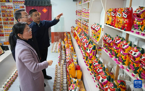 3月19日,人們在姜莊鎮(zhèn)選購泥老虎產(chǎn)品。(新華社記者 徐速繪 攝)