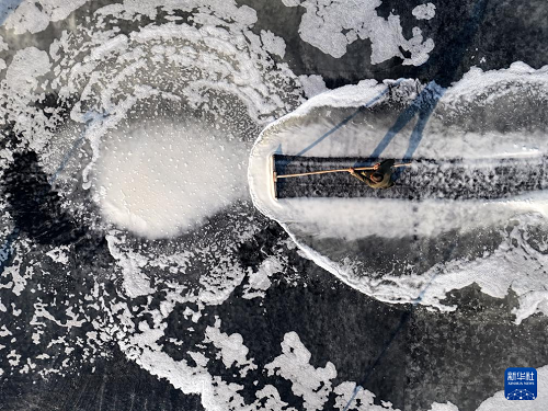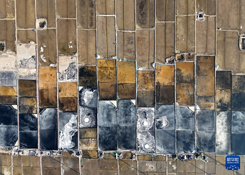 3月24日,工作人員在浙江省樂(lè)清市南塘鎮(zhèn)山馬曬鹽場(chǎng)收鹽(無(wú)人機(jī)照片)。(新華社發(fā) 蔡寬元 攝)