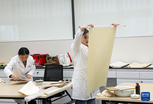 3月26日,選手在參加“紙張書畫文物修復”實操考核。(新華社記者 劉穎 攝)