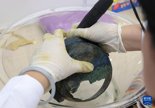3月26日,選手在參加“金屬文物修復”實操考核。(新華社記者 劉穎 攝)