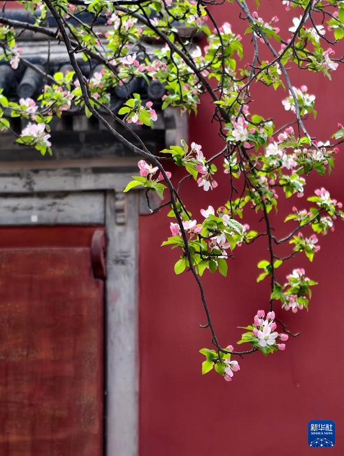 故宮慈寧宮花園內(nèi)海棠盛開(4月1日攝,手機(jī)照片)。(新華社記者 王海燕 攝)