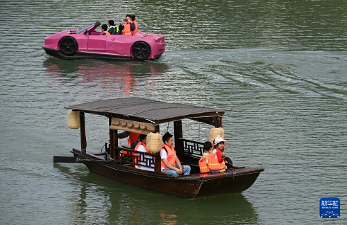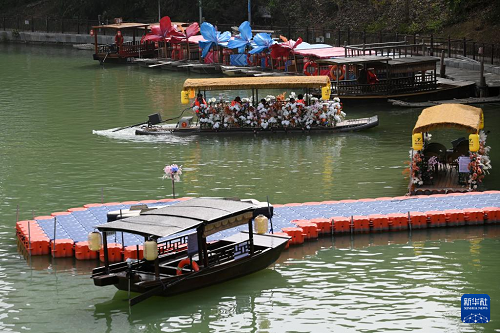 4月13日,廣西南寧市天氣晴好,不少市民利用周末來(lái)到民歌湖上泛舟游玩,享受明媚春光。(新華社記者 陸波岸 攝)