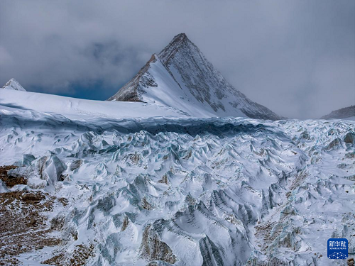 空中俯瞰普拉喜瓊峰及曲隆嘎木冰川(4月13日攝,無人機(jī)照片)。(新華社發(fā) 董志雄 攝)