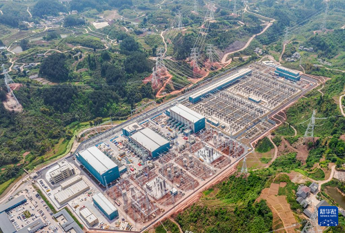 這是4月16日拍攝的建設(shè)中的“疆電入渝”特高壓工程渝北換流站(無人機照片)。(新華社發(fā) 鄭賢列 攝)